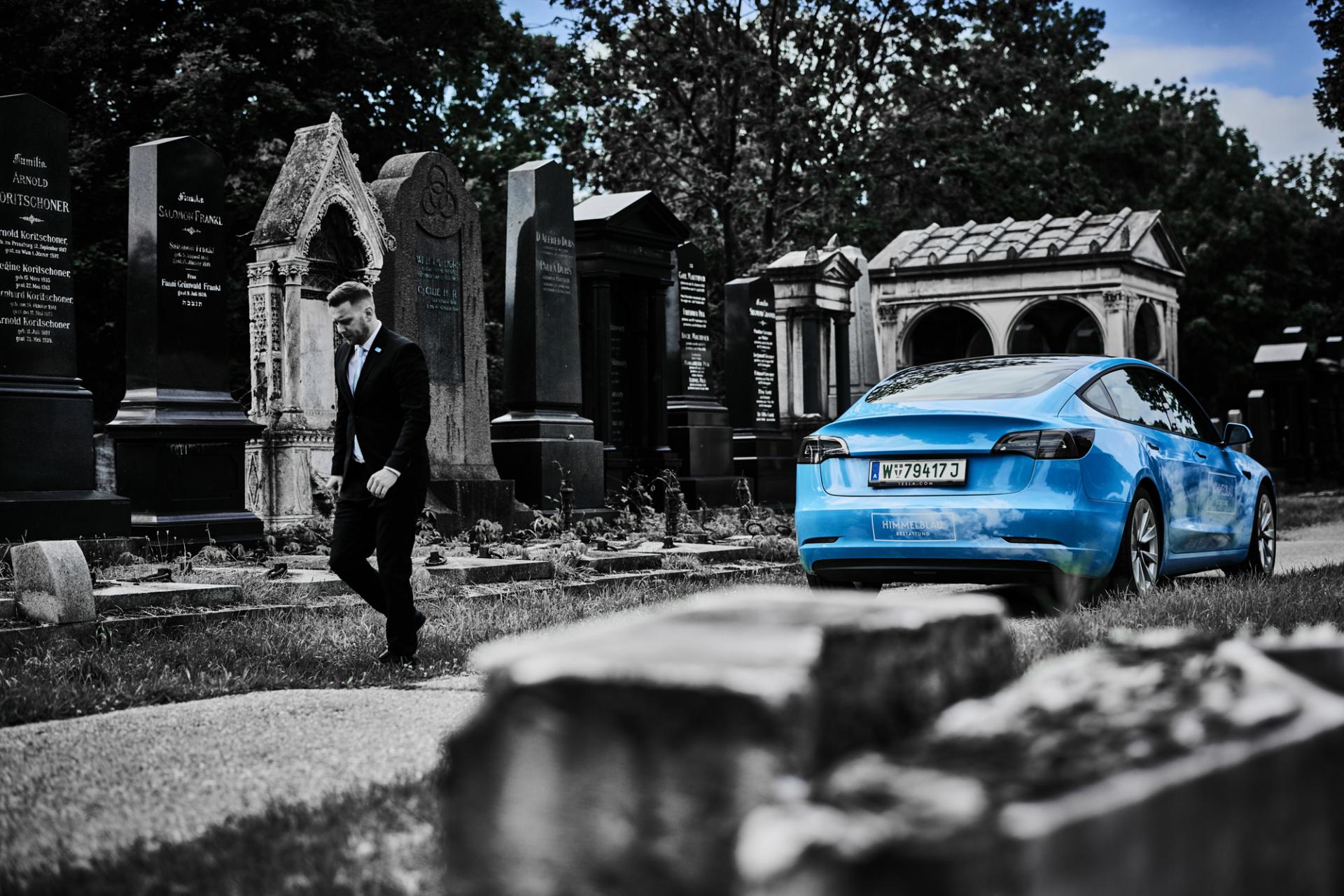 Mit einfühlsamer Hand, frischem Wind und starkem Umweltbewusstsein greifen Georg Haas, Jacob Homan und Klemens Figlhuber das Thema Bestattung neu auf. Tesla Model 3 in namensgebendem Himmelblau inklusive.